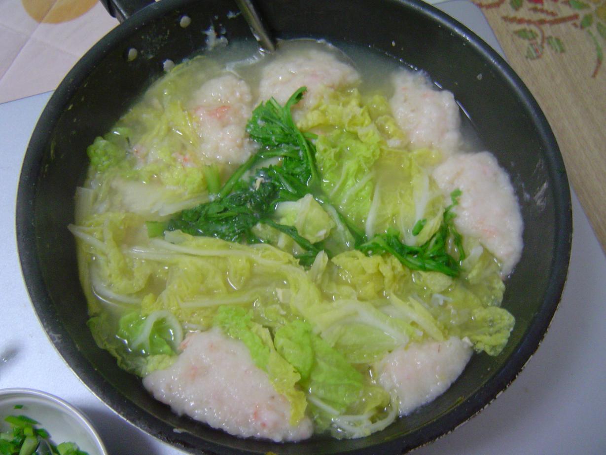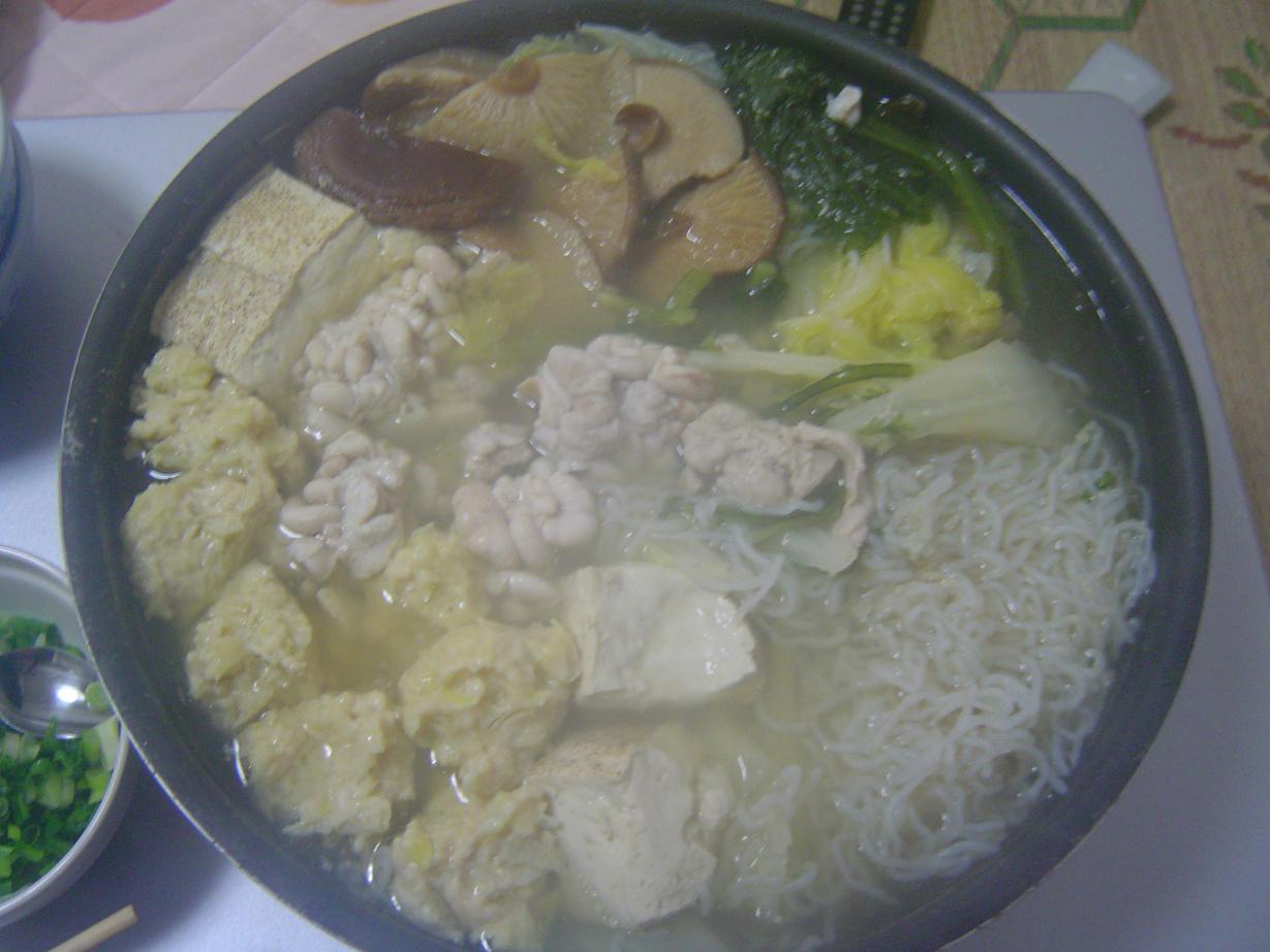 結局2人で食べました。材料は、先に出ました、白菜 しいたけ 春菊 しらたき 鶏もも