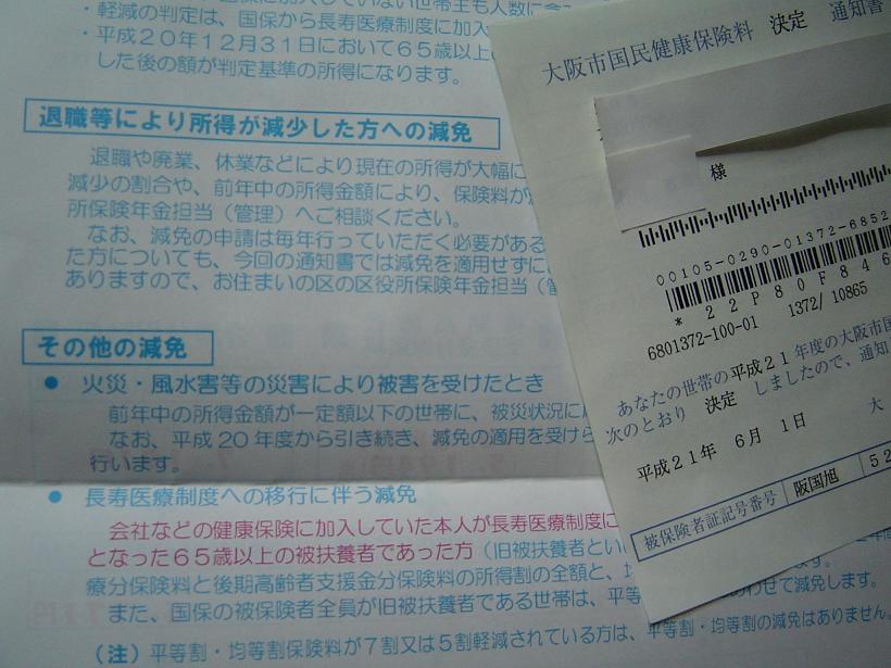 先日、大阪市国民健康保険料 決定 通知書が来ました。